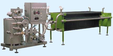 разжим фильтр-пресса, промывка опорного картона при повторном его использовании.